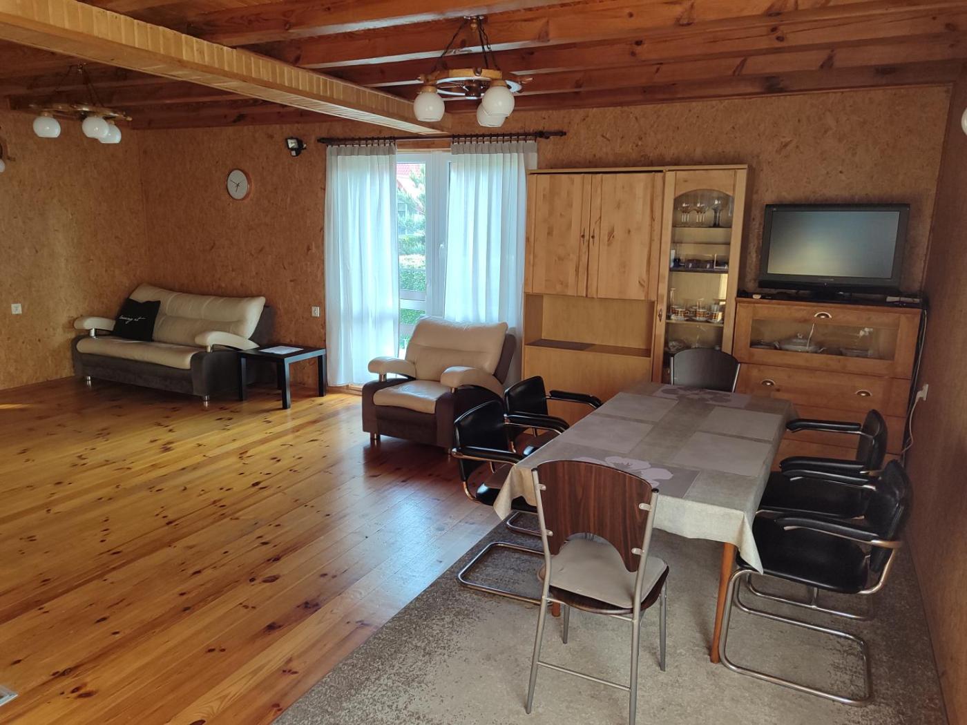 Dom z 4 sypialniami. This holiday home offers a fireplace. Featuring a private entrance, this spacious holiday home also comprises 1 living room, 4 separate bedrooms and 3 bathrooms with a shower. Guests will find a stovetop, a refrigerator, a dishwasher and kitchenware in the well-equipped kitchenette. The holiday home also provides guests with a barbecue. Boasting a terrace with garden views, this holiday home also provides a tea and coffee maker and a flat-screen TV. The unit offers 7 beds. Dom wakacyjny - 12 osobowy. Powierzchnia pokoju ok.: 120 mkw.