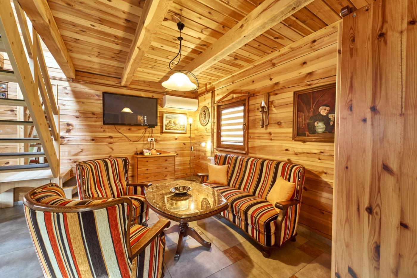 Dom z 1 sypialnią. In the well-equipped kitchenette, guests will find a stovetop, a refrigerator, kitchenware and a microwave. The air-conditioned holiday home offers a flat-screen TV, a private entrance, a coffee machine, a seating area as well as garden views. The unit offers 2 beds. Dom wakacyjny - 4 osobowy. Powierzchnia pokoju ok.: 82 mkw.