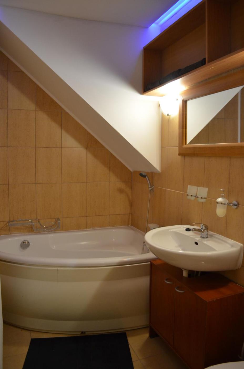 Apartament z 2 sypialniami. Guests will have a special experience as this apartment provides a fireplace. Featuring a private entrance, this apartment is comprised of 1 living room, 2 separate bedrooms and 1 bathroom with a bath and a hairdryer. Guests will find a stovetop, a refrigerator, kitchenware and a microwave in the kitchen. The apartment also has a barbecue. Boasting a terrace with garden views, this apartment also offers a seating area and a flat-screen TV with satellite channels. The unit offers 4 beds. Apartament - 4 osobowy. Powierzchnia pokoju ok.: 50 mkw.