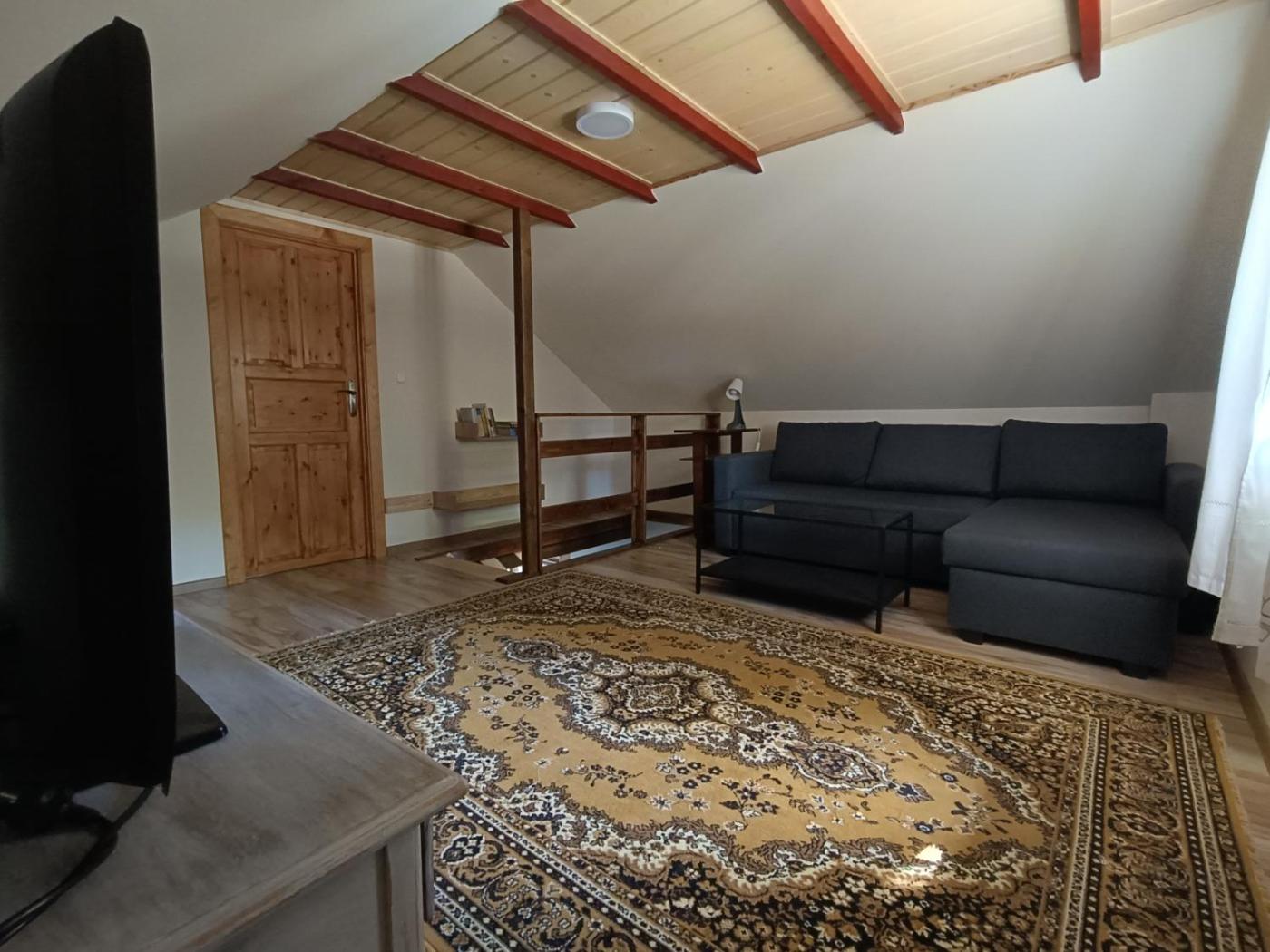 Dom z 2 sypialniami. The fireplace is the standout feature of this holiday home. Guests will find a stovetop, a refrigerator, kitchenware and a tea and coffee maker in the well-equipped kitchen. The holiday home also features a barbecue. The holiday home offers a washing machine, a private entrance, a terrace with garden views as well as a shared bathroom boasting a shower. The unit has 3 beds. Dom wakacyjny - 7 osobowy. Powierzchnia pokoju ok.: 63 mkw.